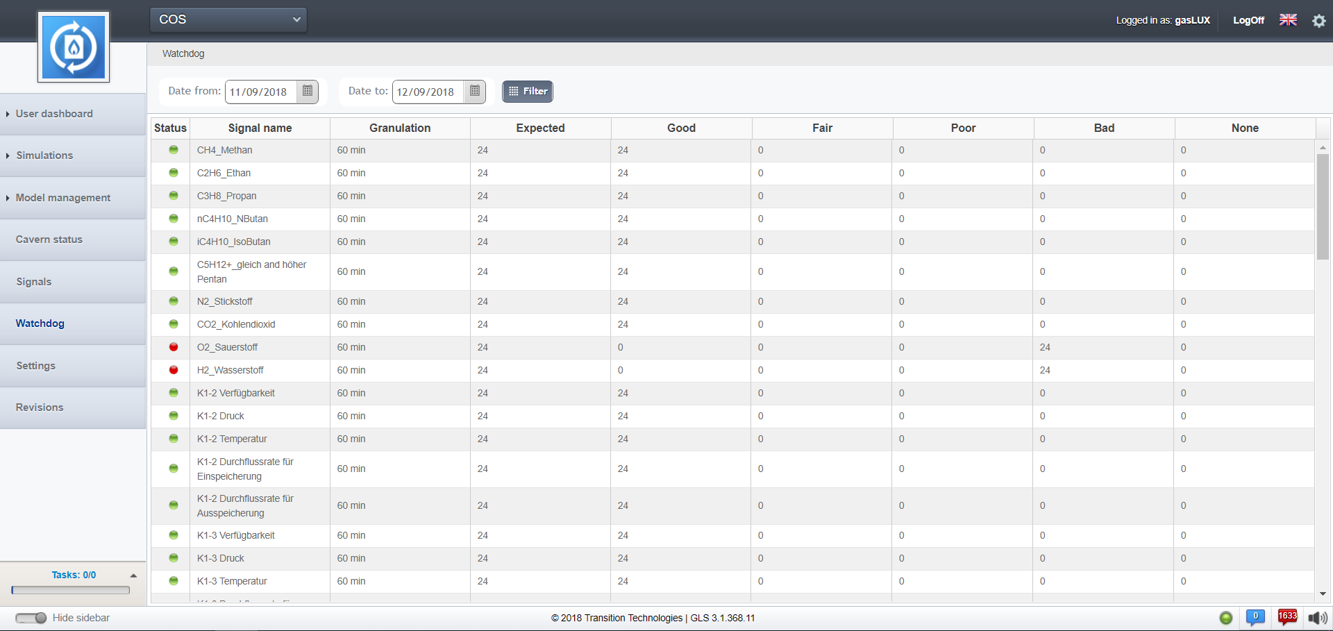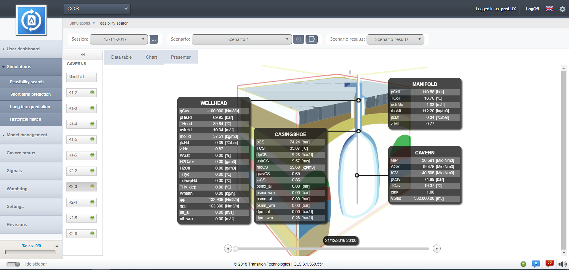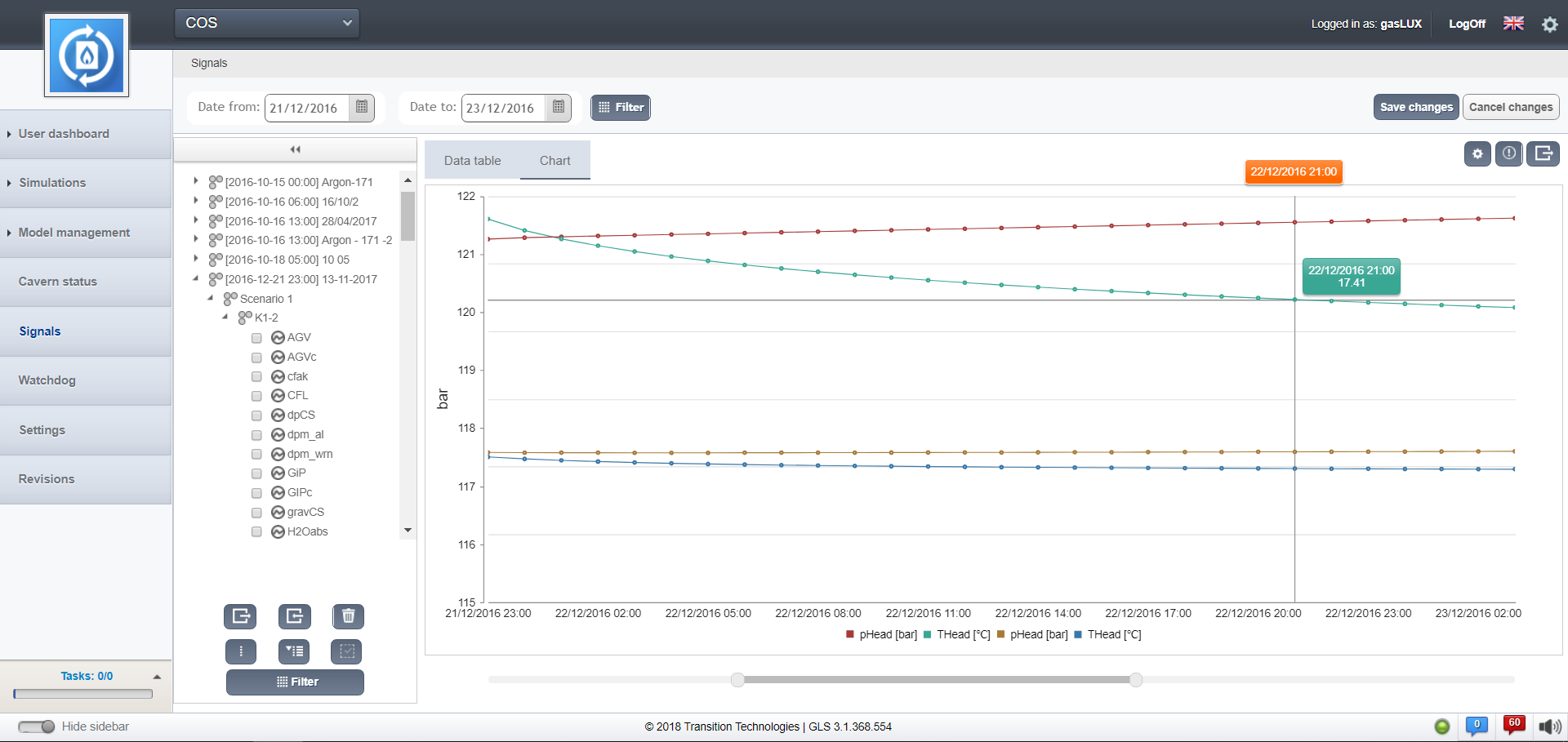 COS dostarcza operatorowi magazynu gazu dokładne i praktyczne informacje dotyczące aktualnej dostępności, stanu i symulowanego przyszłego zachowania kawern. COS wspiera procesy techniczne, ale również dostarcza informacje wspomagające procesy biznesowe.