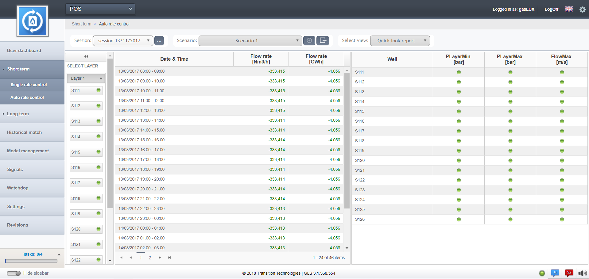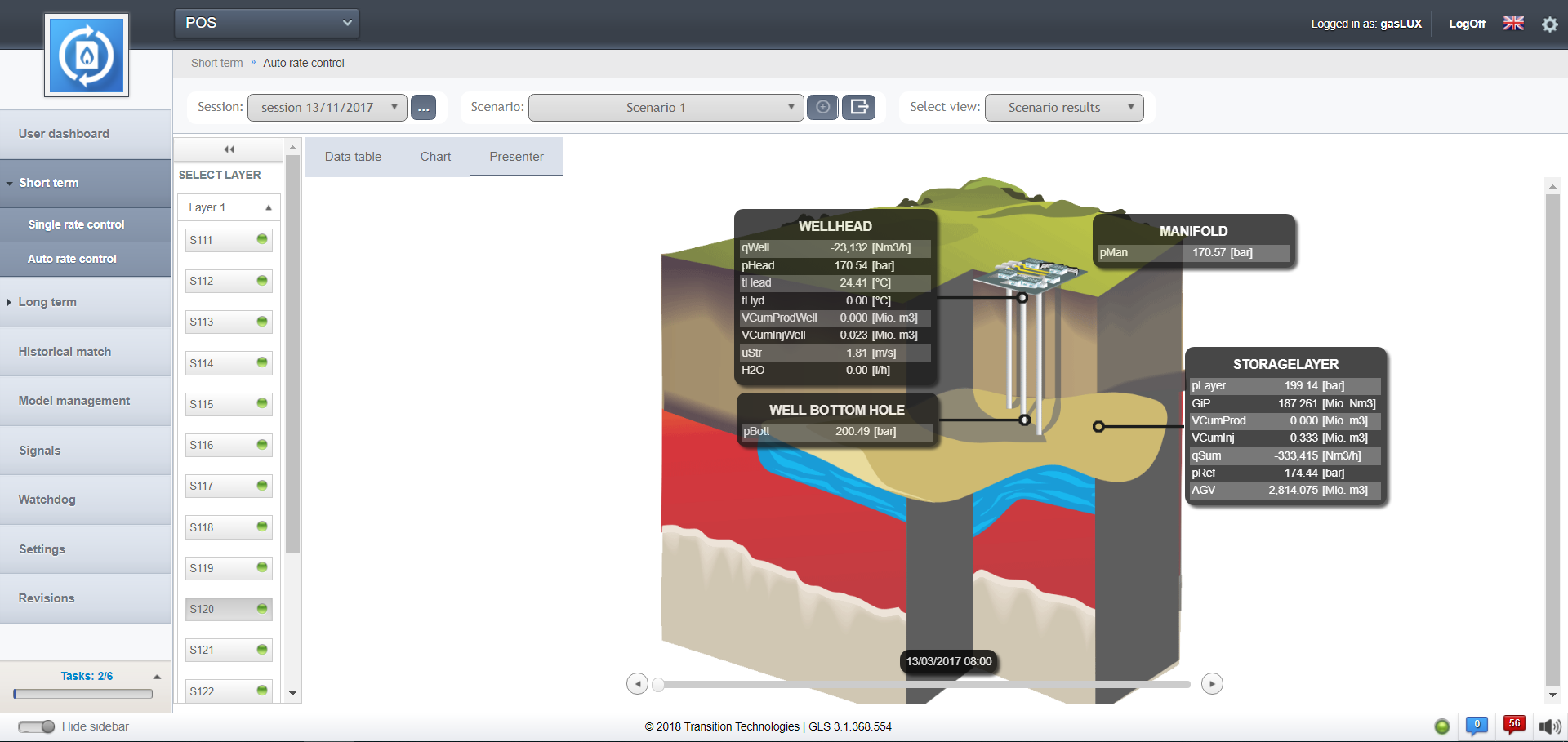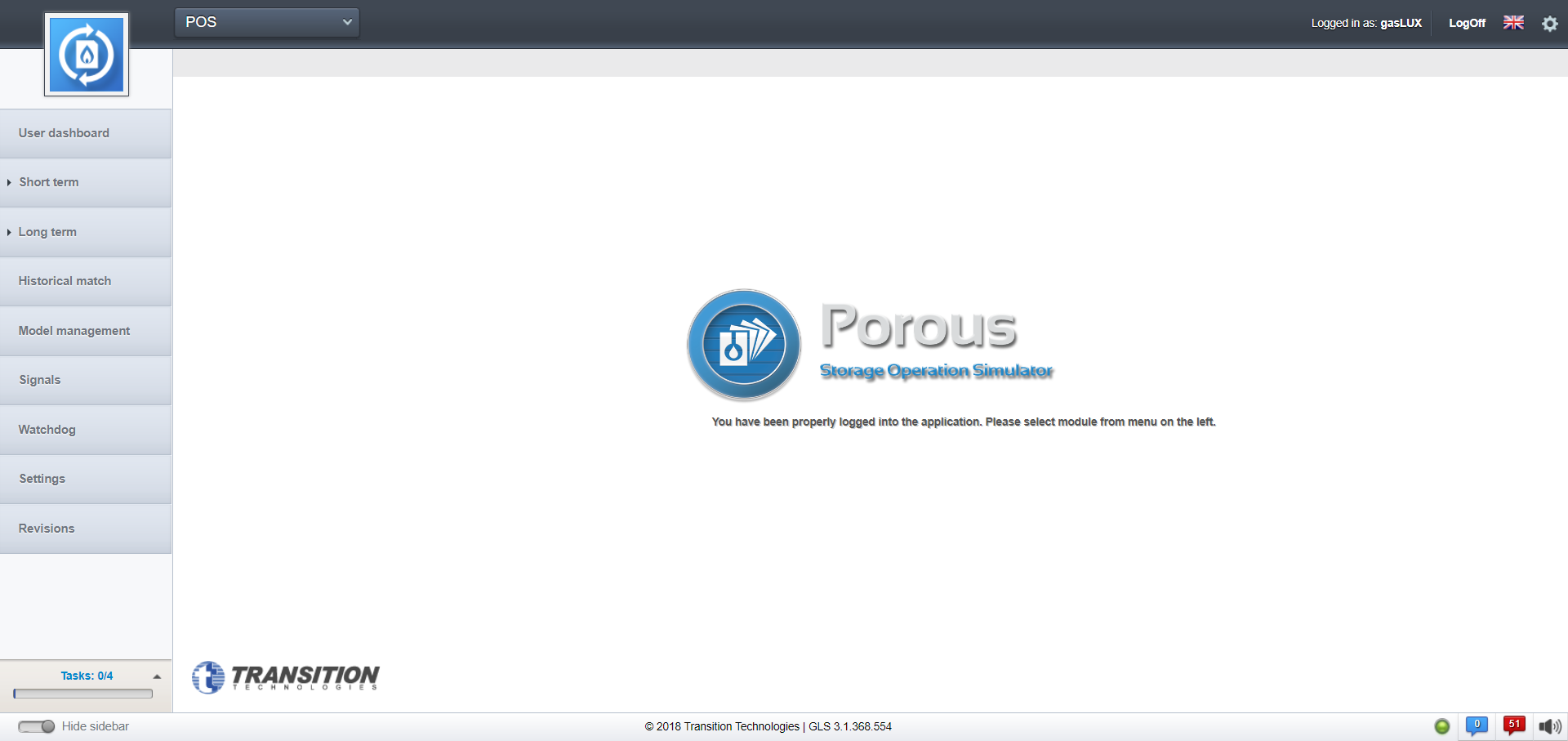POS może być używany jako samodzielny, szybko działający symulator, który pozwala na uzyskanie wyników, dotyczących zachowania części podziemnej magazynu. W połączeniu z innymi elementami oprogramowania gasLUX POS może stanowić istotną część kompleksowego systemu technicznego zarządzania magazynem.